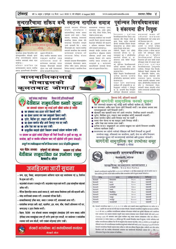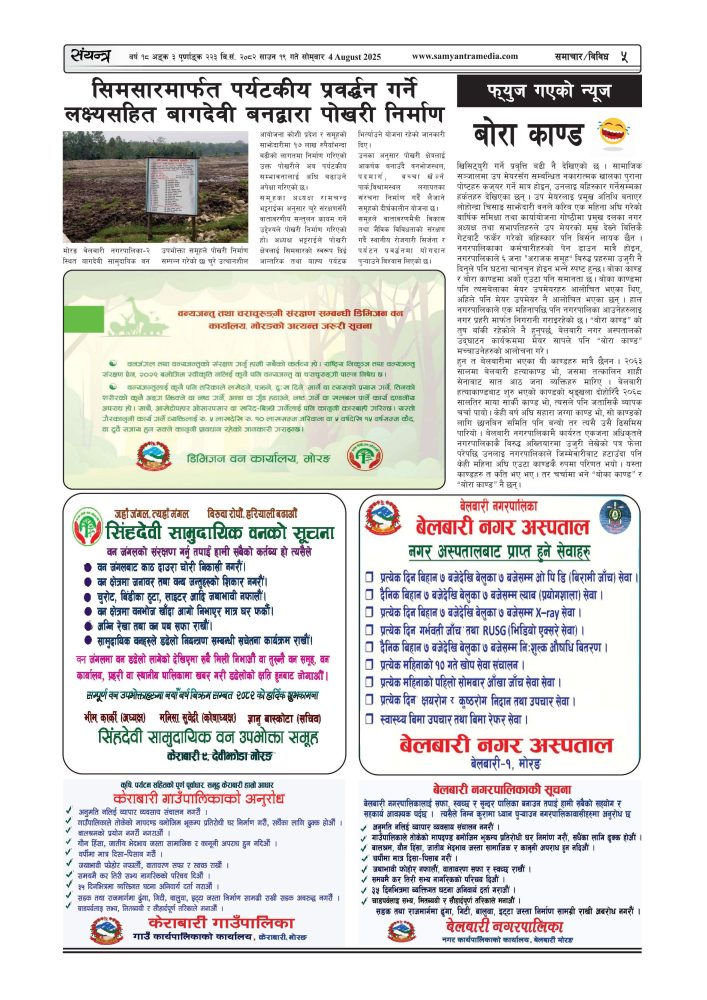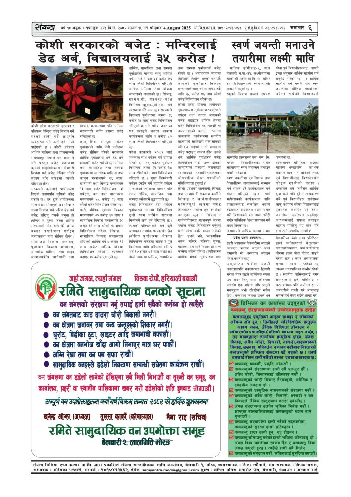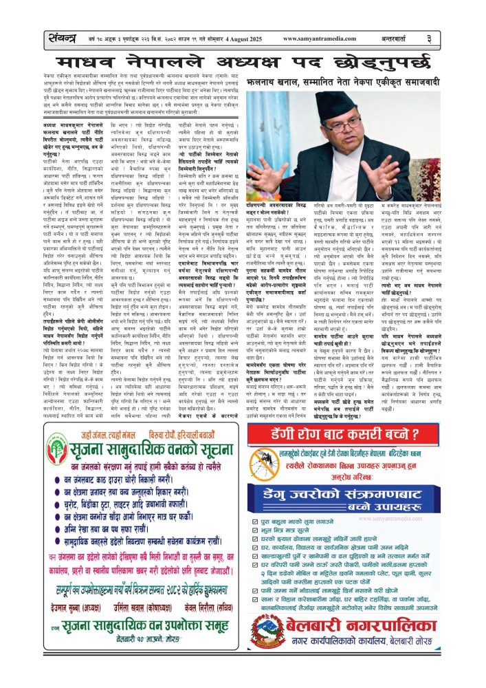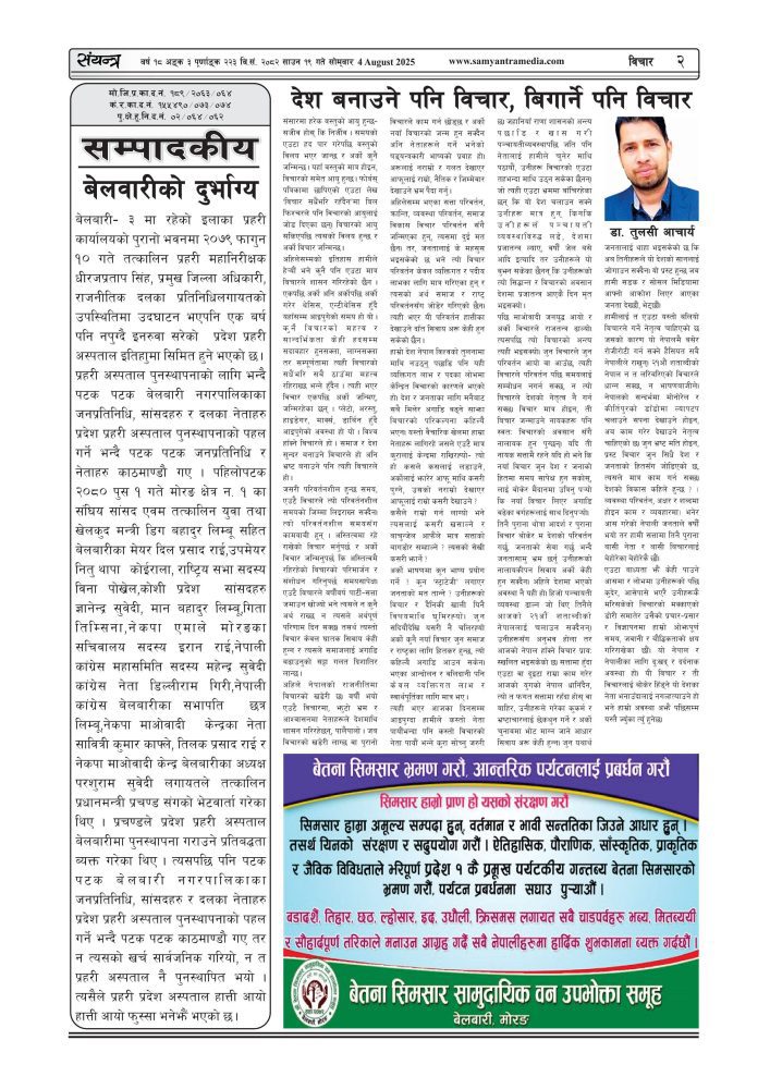 संयन्त्र साप्ताहिक बर्ष १८, अंक ३, २०८२ साउन